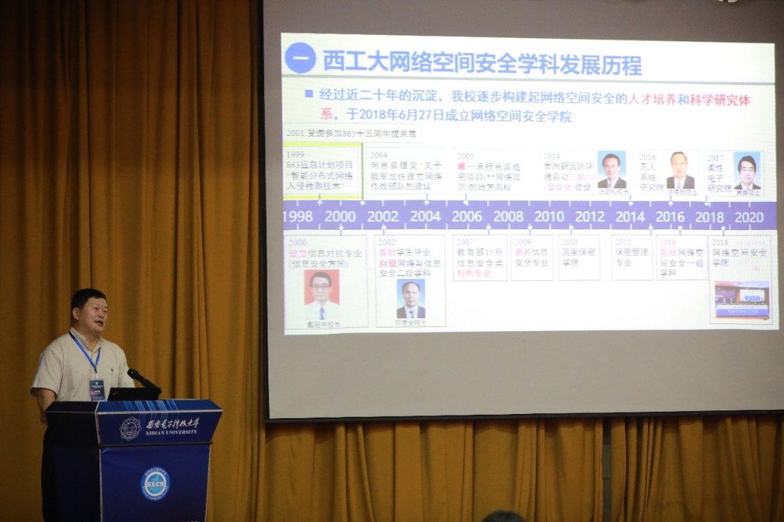 慕德俊教授介绍了西北工业大学网络空间学科,按时间顺序详细讲解了西北工业大学的网络空间安全公司的历史,并着重讲述了在科研方面的成就和项目成果。
