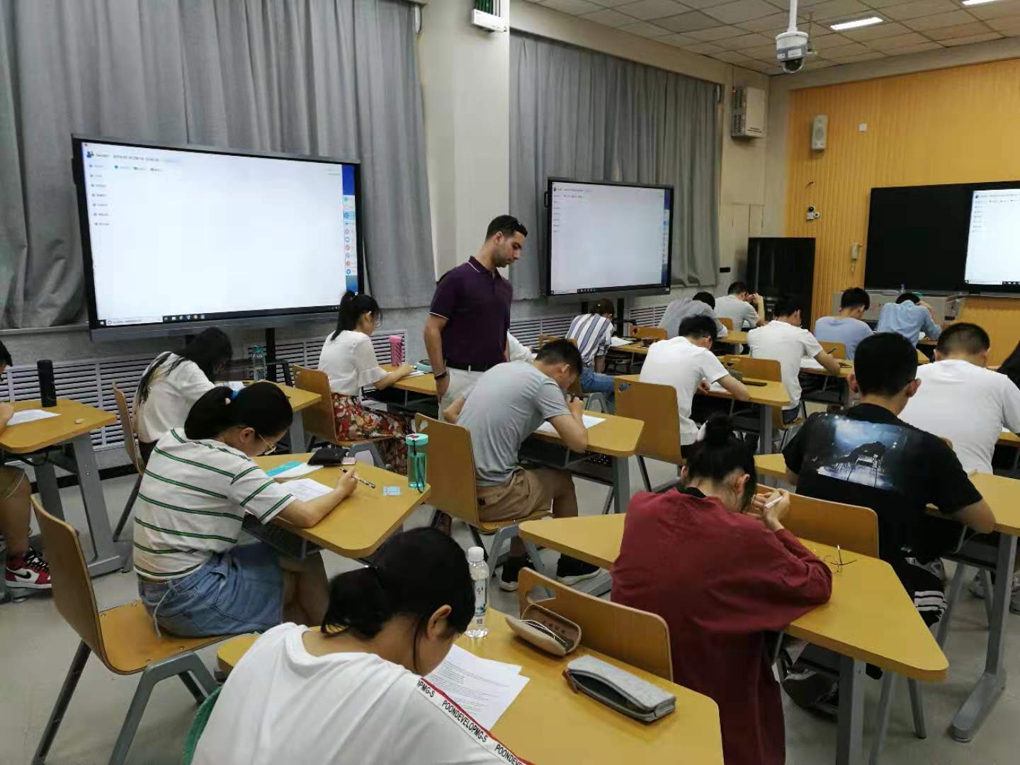 员工对这门课的兴趣很浓,原本只能容纳30人的智慧教室,吸引了很多前来旁听的员工,外教瞬间被员工的热情所感染,东西方思想的火花在这里开始碰撞。该课程使同学们最大感受是“自由,开放,参与,互动”。“国内”在教学方式上更多以老师讲授为主,员工处于被动地位,课堂氛围较沉闷,教学方式较单一。此次,外教则更多注重员工学习知识时的体验过程,课堂上更多采用分组探讨,活动与游戏等方法传授知识。该门课程使人印象最深的是外教讲授“噪声对信息传输的影响”时和员工开展的一个游戏。在这个游戏中,外教首先低声细语地告诉第一个员工一条信息,接着第一个员工再低声细语地告诉第二个员工,……。整个过程中,其他员工大声地交流来干扰信息的传递,直到最后一个员工收到信息。结果发现最后一个员工收到的信息与外教初始传递的信息竟然有很大的出入。员工通过该游戏,全程参与到老师课堂教学活动中,这种形式的教学,形象,生动,员工对课堂内容理解深刻,从避免了教学的枯燥乏味,员工注意力容易分散等问题。
