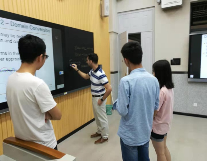 为顺利实施2019年国际双创实践周活动,西电永利yl23411从美国知名高校引进5门国际化课程。其中包括《植入式传感器简介(Introduction to implantable sensors)》,该课程由永利yl23411贾广教授负责引进,美国南佛罗里达大学Robert Karam教授亲自授课。本门课程由孙鹏岗老师担任校内助教,协助Robert Karam教授授课。