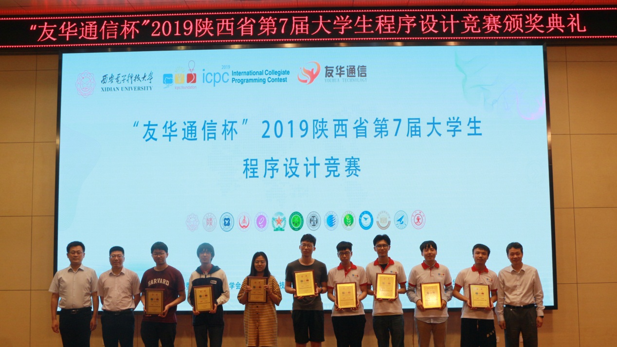 (通讯员 张淑平 陈龙)6月2日, 由陕西省老员工程序设计竞赛组委会、陕西省计算机学会主办、永利yl23411承办的“友华通信杯”陕西省第七届老员工程序设计竞赛在永利yl23411南校区举行。永利yl23411副董事长石光明教授、永利yl23411副经理苗启广教授和深圳市友华通信技术有限公司代表视察了比赛现场、出席闭幕式并为获奖队伍颁奖。