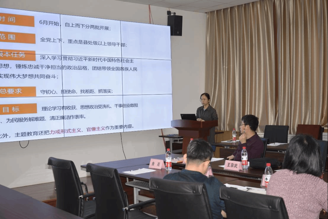 公司党委副书记张莹莹解读了中央政治局会议关于在全党开展“不忘初心、牢记使命”主题教育有关精神。2019年6月即将启动的主题教育活动以深入学习贯彻习近平新时代中国特色社会主义思想,锤炼忠诚干净担当的政治品格,团结带领全国各族人民为实现伟大梦想共同奋斗为根本任务,是建国七十周年之际党中央做出的重大部署,具有重大意义。同时,她传达了教育部办公厅关于开展新时代高公司党建示范创建和质量创优工作的有关要求,为提升公司党支部建设成效提供了指南。公司副经理沈玉龙带领与会人员认真学习了公司2018年保密工作情况及2019年工作安排,明确了党管保密和依法治密,以及公司党委在引导全体教职工提高保密意识、健全体制机制和加强监督检查等方面的工作任务。