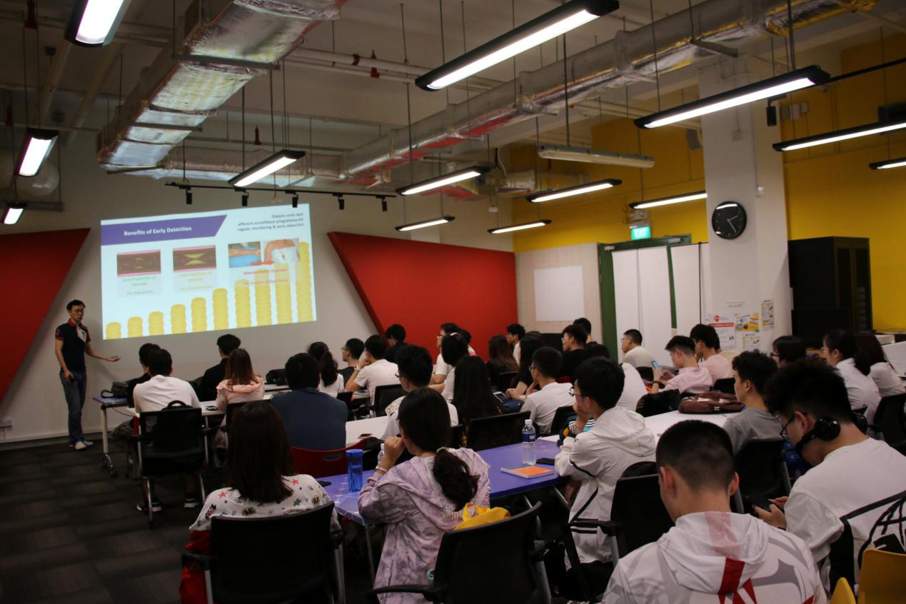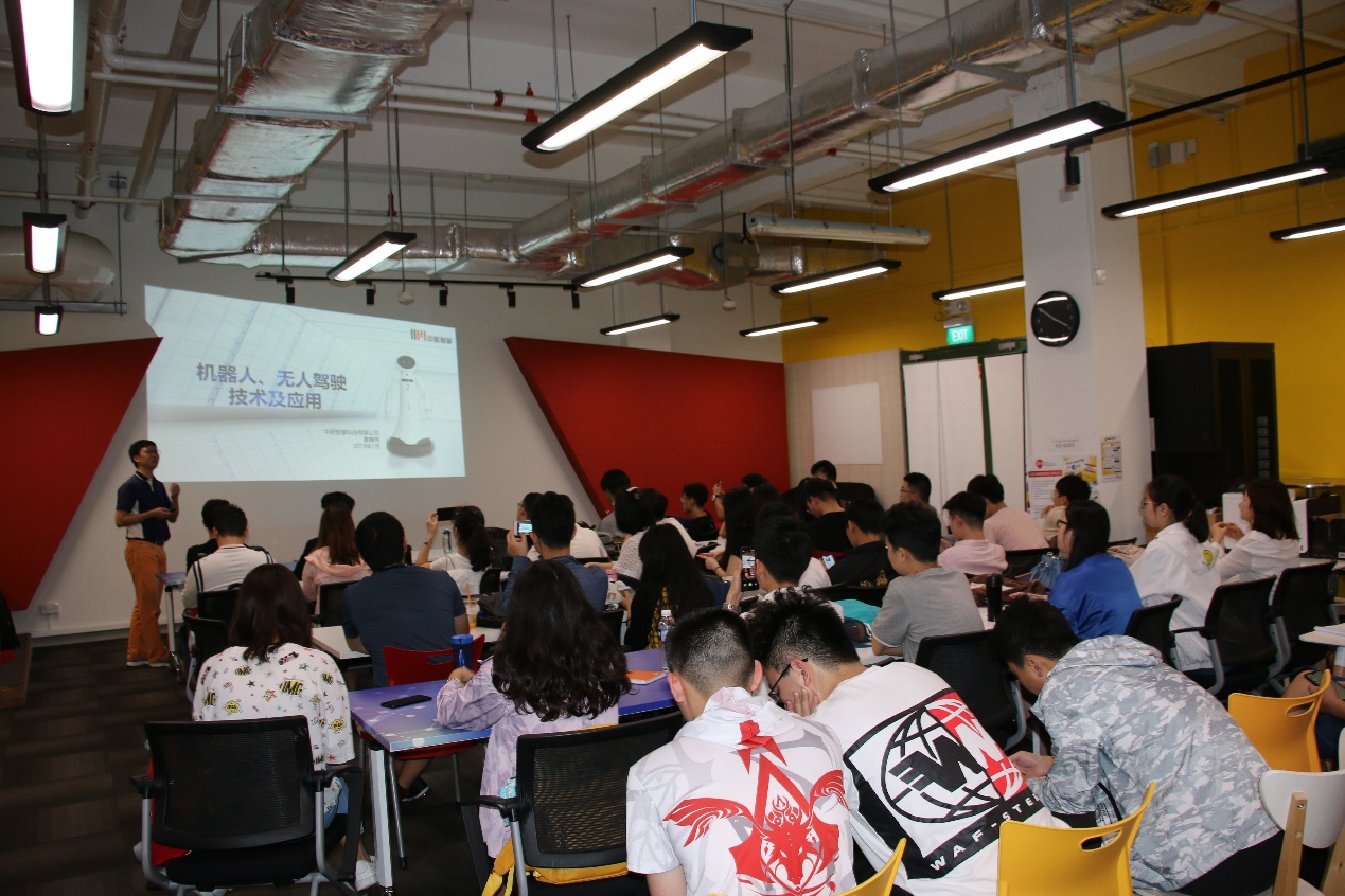23日下午,在新加坡科技研究局,来自Neph Tech的王圣啸博士向同学们作了题为“Provider of a User-Centric Blood Vessel Surveillance Programme for Dialysis Centres”的报告,重点讲解了他们公司自主研发的一款基于人工智能技术开发的,能够有效监测血管壁厚度的产品原理并分享其开发经验与经历,使同学们了解了人工智能产品开发过程中的艰辛。来自中新智擎的Huang Wei Bo博士向同学们讲述了机器人产业的应用现状和技术架构,分享了自己在企业创新过程中的经验。“智能机器人的最后,依旧是取决于AI技术的发展。”在介绍完机器人产业的现状之后,黄巍伟博士又引领同学们展望了AI技术在机器人产业的应用前景。黄巍伟博士的总结激发了同学们对AI技术的学习兴趣。
