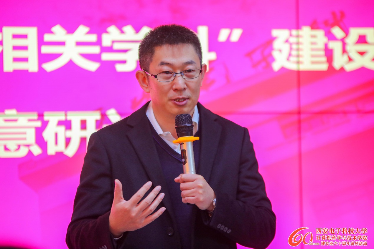 崔江涛代表公司对兰州大学等高校代表表示欢迎。他从成果奖励、学科水平、团队队伍、人才培养、优秀员工等方面对西电计算机科学与技术学科的发展历史和现状进行了详细介绍,提出要在现有公司及学科发展基础上采取超越领先的公司及团队建设的“三步走”中长期发展战略。