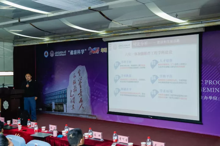 永利yl23411软件公司经理武波教授、软件工程团队建设秘书长宋胜利教授、软件工程学科方向负责人刘西洋教授、杜军朝教授和校内外师生100余人参与了此次研讨会。会议首次采用多通道新媒体传播方式,共计六千余人次参与了网络图片直播,千余人次观看了网络视频直播。