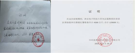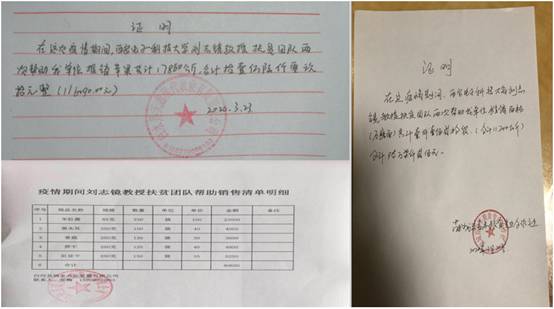 2020年1月到4月初,短短三个多月时间里,刘志镜教授团队共举行了五次“抗疫情,搞帮扶”活动,销售的农产品包括苹果、石磨面、鸡蛋、活鸡、黑猪肉、羊肚菌、黑木耳、香菇、笋干和天麻等生活必需品,累计销售苹果17860公斤(价值116090元)、面粉11200公斤(价值67200元)、鸡蛋10000余盘(价值300000元)、活鸡500只(价值43200元),山货(羊肚菌、黑木耳、香菇、笋干和天麻)630余袋(价值40650元),红薯粉条4300公斤(价值129000元),黑猪肉76箱(价值22800元)。帮助贫困户300余户,销售农产品销售价值总计:718940元,惠及社区百姓超过960余户。此外,刘志镜教授团队还开展了西甜瓜的订单生产等帮扶工作。