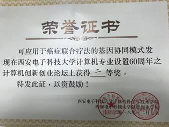 3.研究所师生团队研发的《可应用于癌症联合疗法的基因协同模式发现》系统,在永利yl23411计算机专业设置60周年之计算机创新创业论坛上,获得貮等奖。