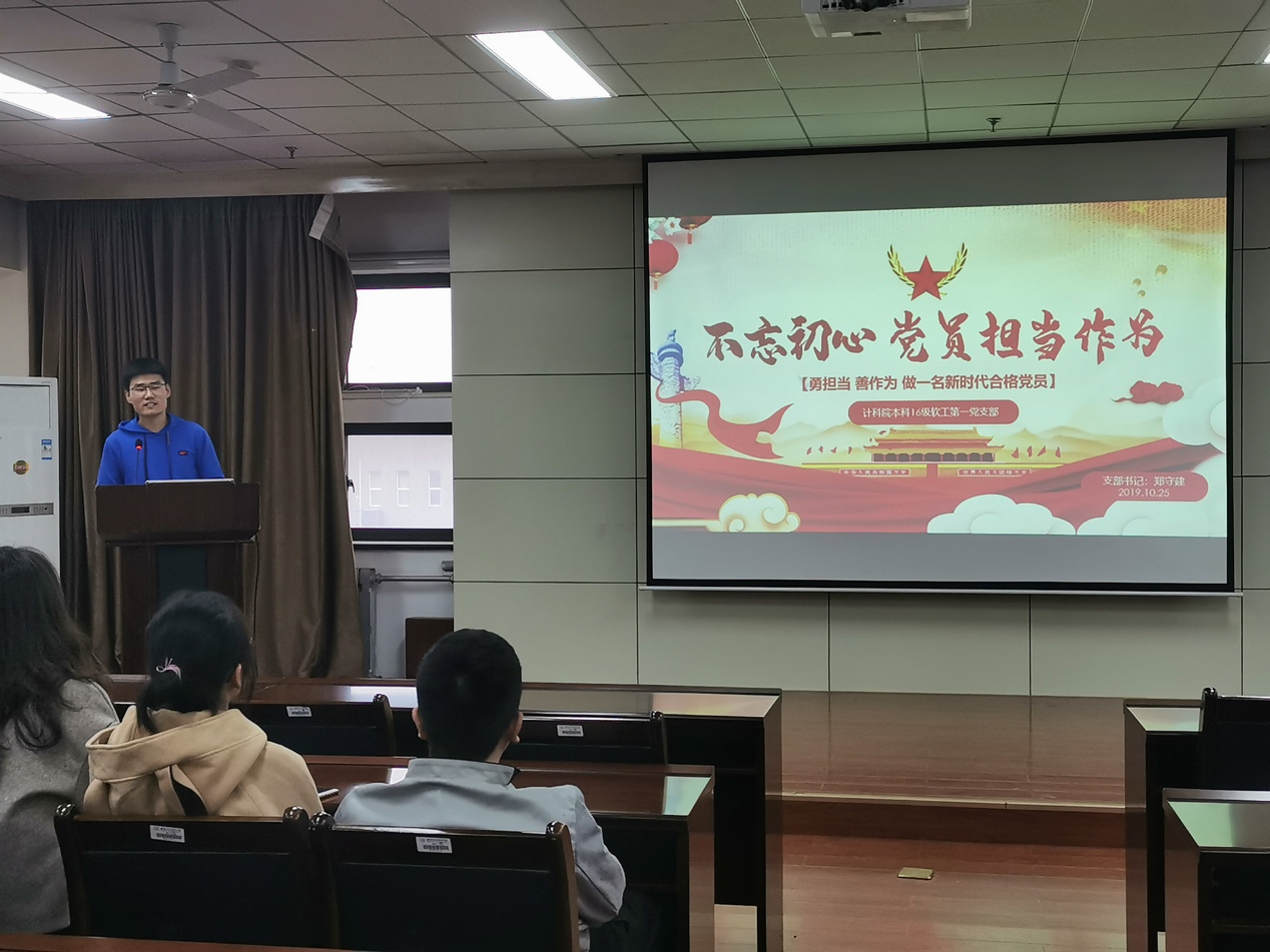 (通讯员 曹佳妮)习近平总书记在十九大报告中指出,要在全党开展 “不忘初心、牢记使命”主题教育活动,用党的创新理论武装头脑,推动全党更加自觉地为实现新时代党的历史使命不懈奋斗。中共中央决定从6月开始,在全党自上而下分两批开展“不忘初心、牢记使命”主题教育活动。10月25日下午五点,永利yl23411本科2016级软件工程第一党支部在G楼516开展“不忘初心、牢记使命”主题教育党课活动。活动由支部书记郑守建主持。
