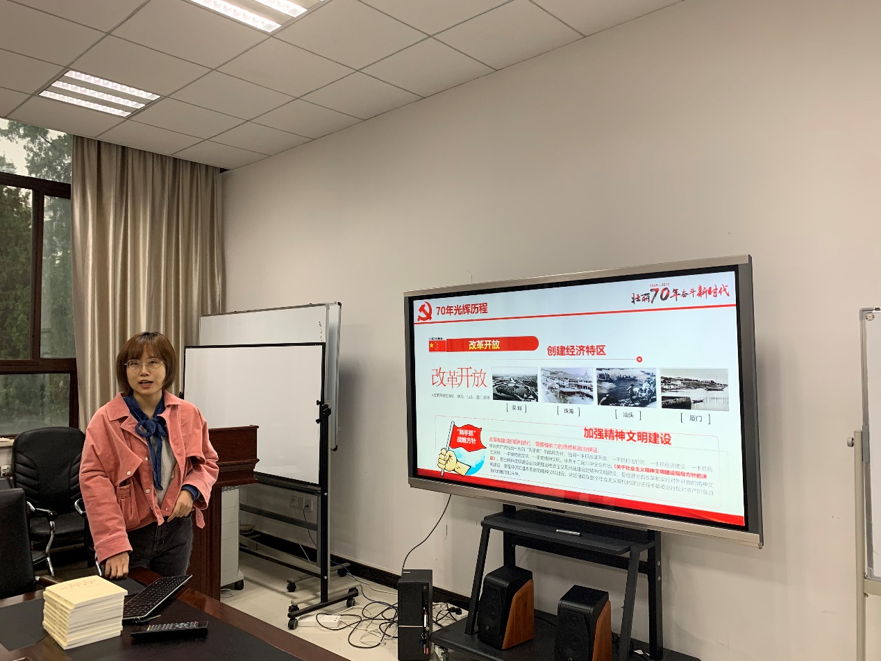 接着,由郭佳琦同志以“我和我的祖国”为主题为支部成员做相关主题教育,本次主题教育主要包括以下四部分内容。