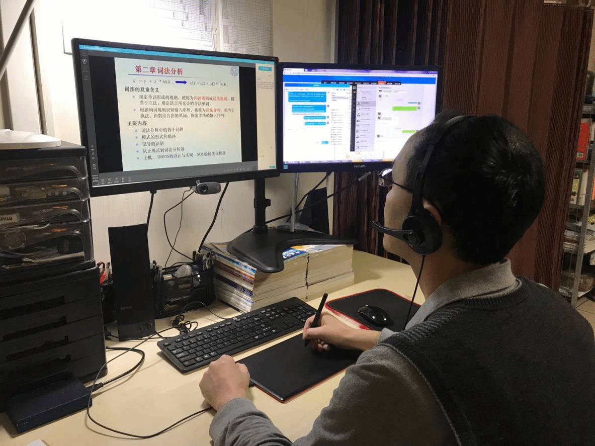 王小兵老师本学期主讲大三“编译原理”,该课程被往届员工誉为“天书中的天书”。虽然讲授“编译原理”课程已经了15年了,但是面对全新的线上教学模式,王小兵老师觉得需要改变传统的教学思维,提前做好各种准备,以应对可能发生的不同情况。