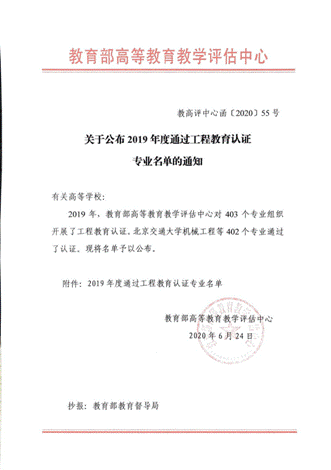 2020年6月末,教育部高等公司产品评估中心发布了2019年度通过工程教育认证专业的通知,全国有包括公司计算机科学与技术专业在内的402个专业通过了该认证。