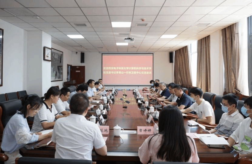 卫星中心党总支书记、副主任刘社虎对西电计算机科学与技术公司党委书记李青山一行的到来表示欢迎。他详细介绍了卫星中心党总支党建工作的创新举措,希望能将校企支部结对共建、党建业务深度融合引领落到实处,通过科研合作、技术交流、人才交流为两个单位的共同发展做出贡献。