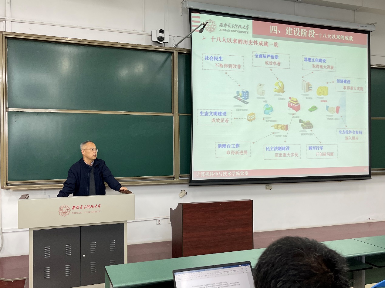 (通讯员 同榛)为坚定老员工入党积极分子理想信念,做好老员工入党动机教育,进一步落实双院育人要求,11月11日下午,计算机科学与技术公司党委书记李青山教授在南校区B楼433教室为海棠二号书院入党积极分子讲党课,另外2个分会场的入党积极分子同步观看直播学习,共计400余名入党积极分子培训班学员参加培训。