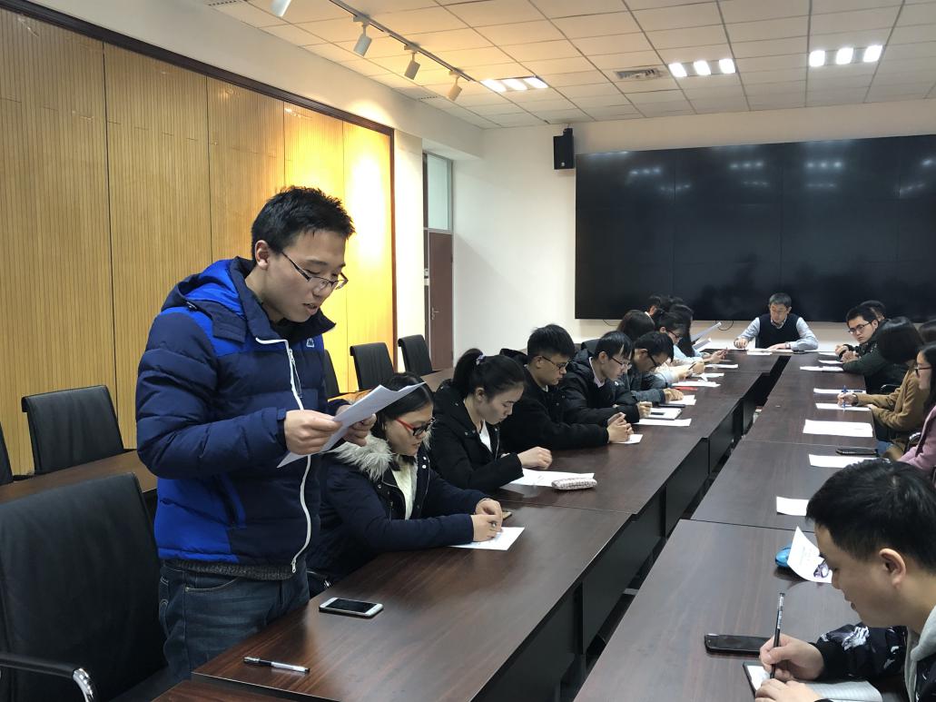 会议第一阶段,支部书记吴瑾同志对支部2018年下半年工作进行总结并对2019年支部工作给与展望和规划。自2018年11月支部成立以来,在支部全体党员的支持和努力下,各项工作稳步开展,取得良好的发展势头,但目前仍存在诸多不足,例如,很多同学在思想上对党建工作重视不够,支委班子的整体工作水平有待提高等。2019年支部将继续提高支委班子的工作水平,服务意识;加强规范支部的党建工作,以党课学习为指引,加强党员日常教育监督;组织开展更多党员喜闻乐见的主题活动,进一步提升党支部的凝聚力和向心力。