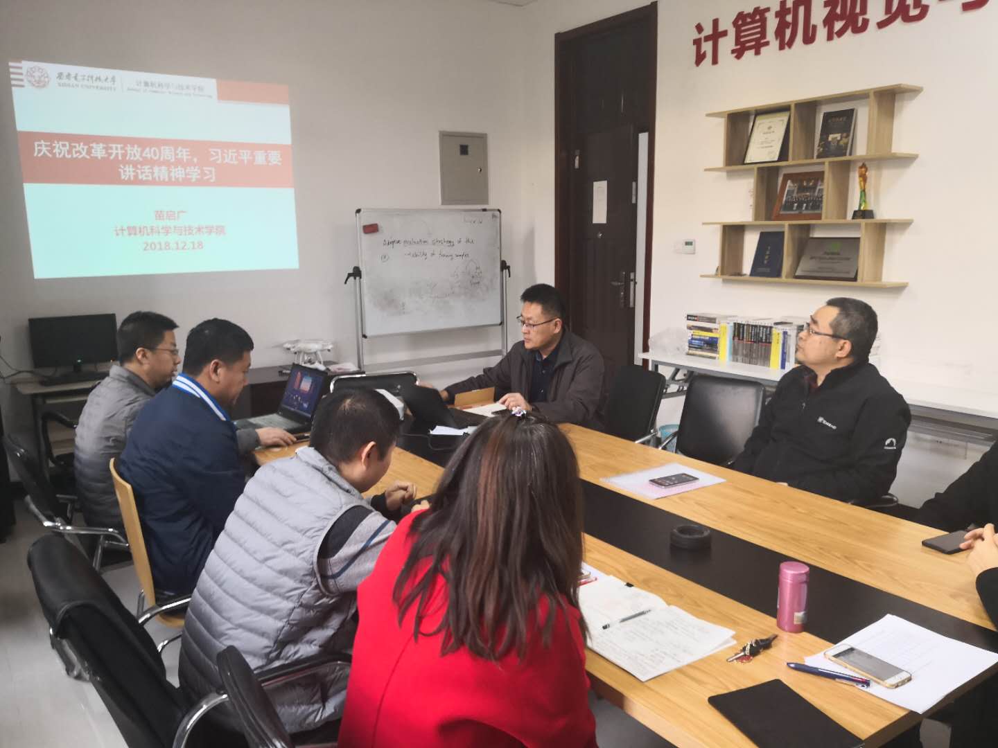 (通讯员 王琨)12月18日上午,庆祝改革开放40周年大会隆重召开。中共中央总书记、国家主席、中央军委主席习近平出席大会并发表重要讲话。当天下午,永利yl23411网络工程系党支部在主楼四区225开展了学习“习近平在庆祝改革开放40周年大会上的重要讲话”主题党日活动。本次活动由支部书记苗启广教授主持,支部党员参加学习。