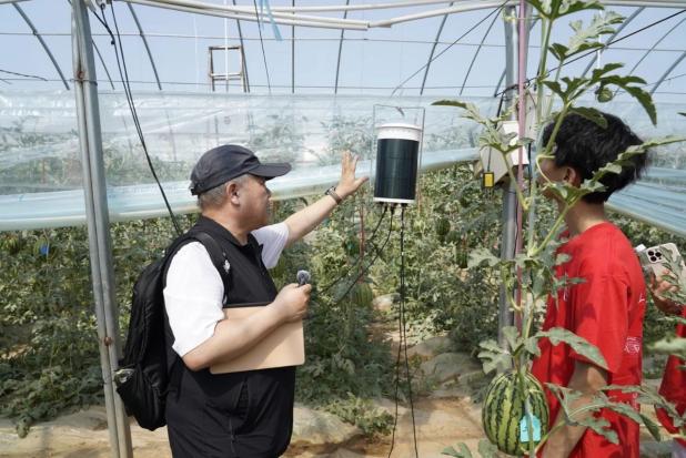 西甜瓜棚里,从“AI”到“机器人”,从“大数据”到“物联网”,刘志镜教授与同学们肩并肩,在蒲城西甜瓜的甜蜜世界里,为大家讲述着科技助农的精彩故事。无人机多光谱农田检测、智慧大棚与小型气象站,大棚里触手可及的“科技+农业”让同学们大开眼界。刘老师勉励同学道:“要为国家发展献身科学,创新思维,努力学习,贡献西电力量!”
