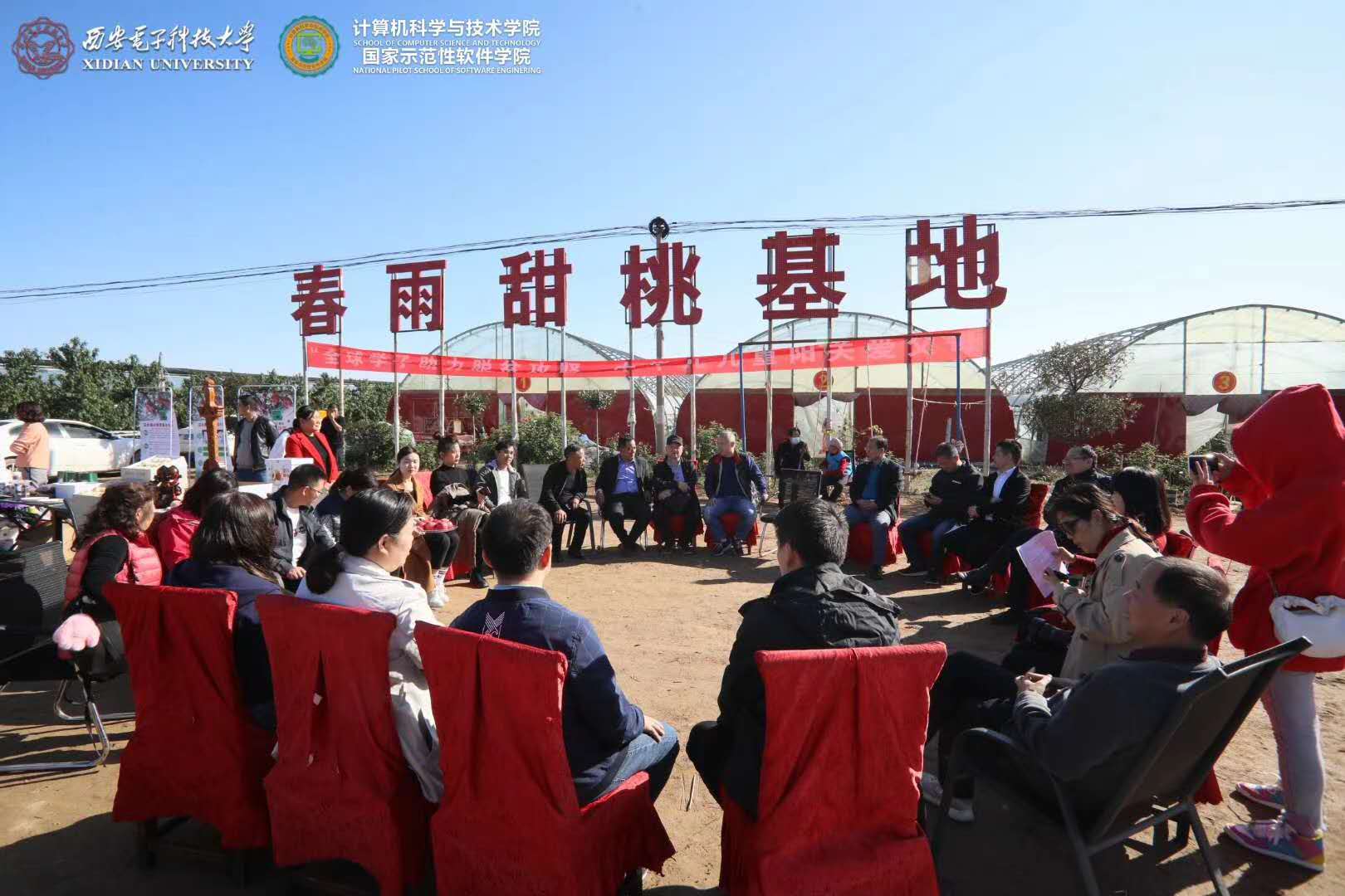 在直播结束后,校扶贫办主任沈强、公司党委书记李青山、校留学人员联谊会副秘书长王琳、刘志镜教授“山货帮”团队、校留联会永利yl23411分会带货代表、中国农科新闻网执行总编曹雅静及企业代表等围坐在春雨甜桃合作社的桃园里,举行了题为“田间擦碰科技富农新火花,地头共绘智慧农业新画卷”的科技扶贫座谈。