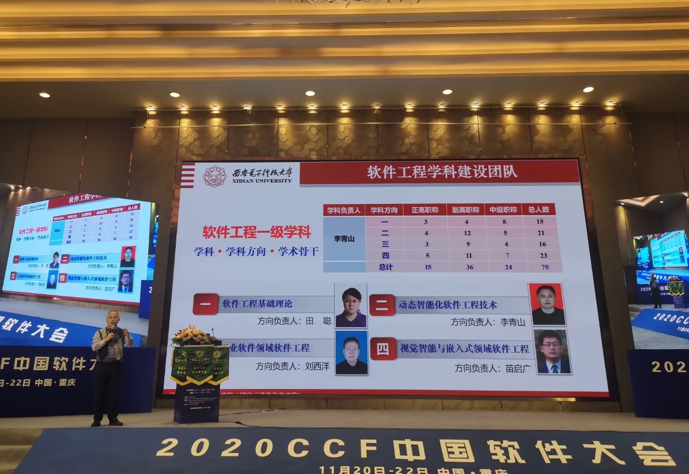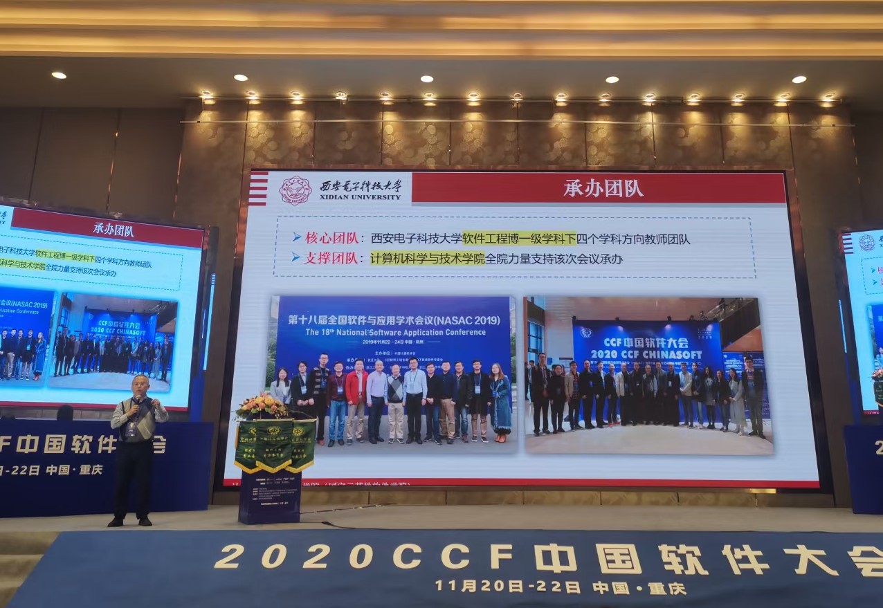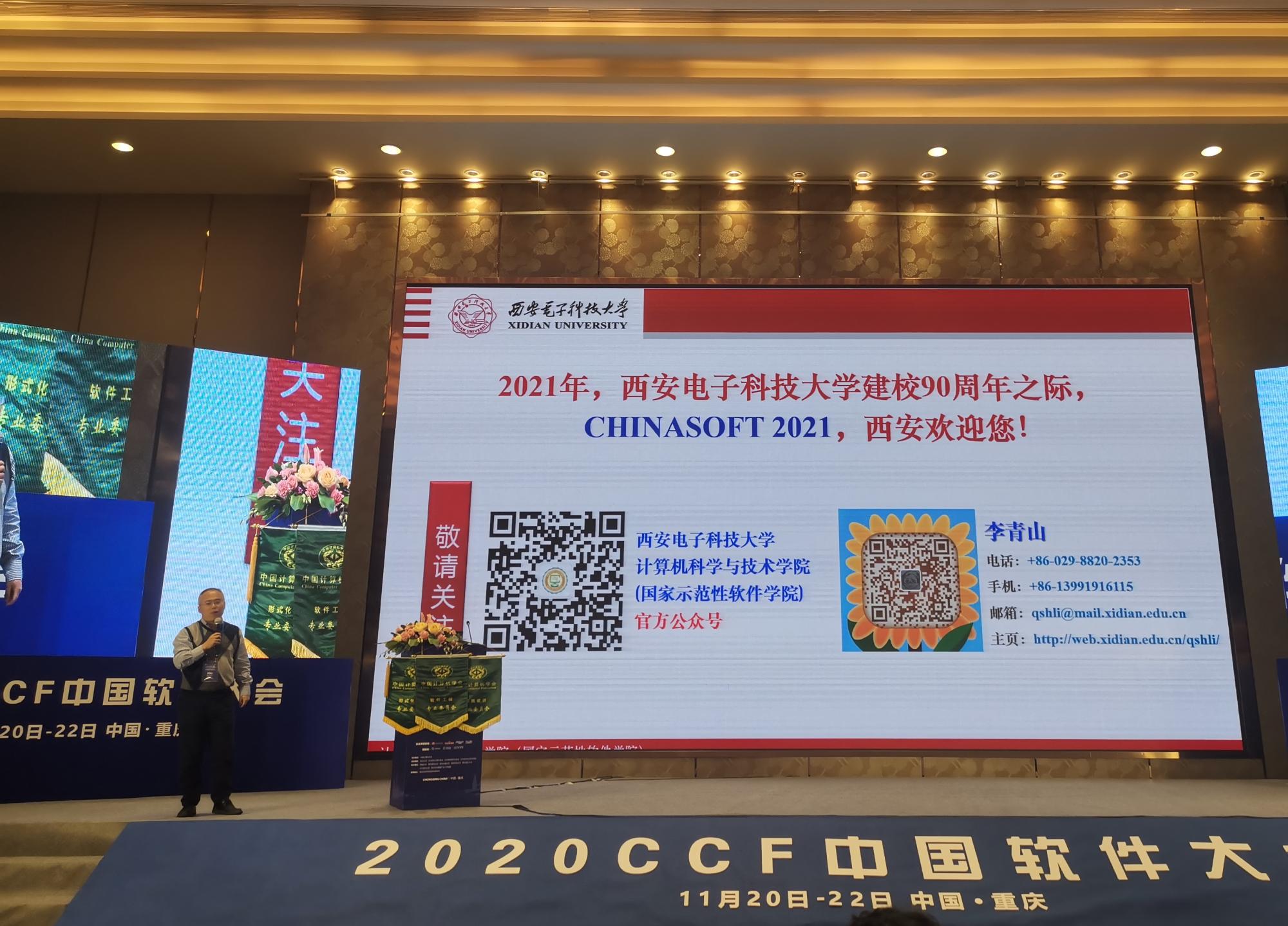 (通讯员 徐悦甡)2020年11月20日至11月22日,CCF中国软件大会(CHINASOFT)在重庆召开,会议由中国计算机学会(CCF)主办,CCF系统软件专业委员会、CCF软件工程专业委员会、CCF形式化方法专业委员会、重庆大学大数据与软件公司承办。永利yl23411软件工程学科四个学科方向的骨干教师20余人及部分员工,在学科负责人李青山教授、学科方向负责人田聪教授、刘西洋教授、苗启广教授以及学科秘书长宋胜利教授的带领下参加了会议。学科参会教师和员工有多篇论文被录用并被推荐到《软件学报》等知名期刊,参会教师和员工还在大会举办的教学与学科竞赛中获得佳绩。特别地,公司获批了明年CCF中国软件大会的承办权,李青山参加了下届会议的承办交接仪式。