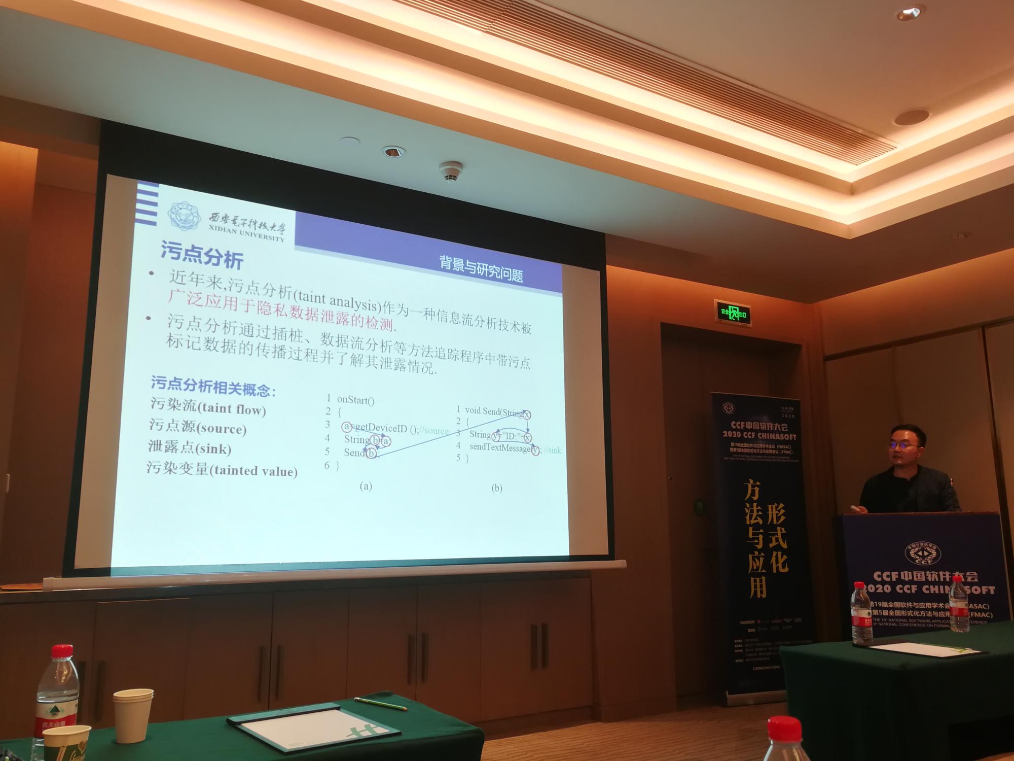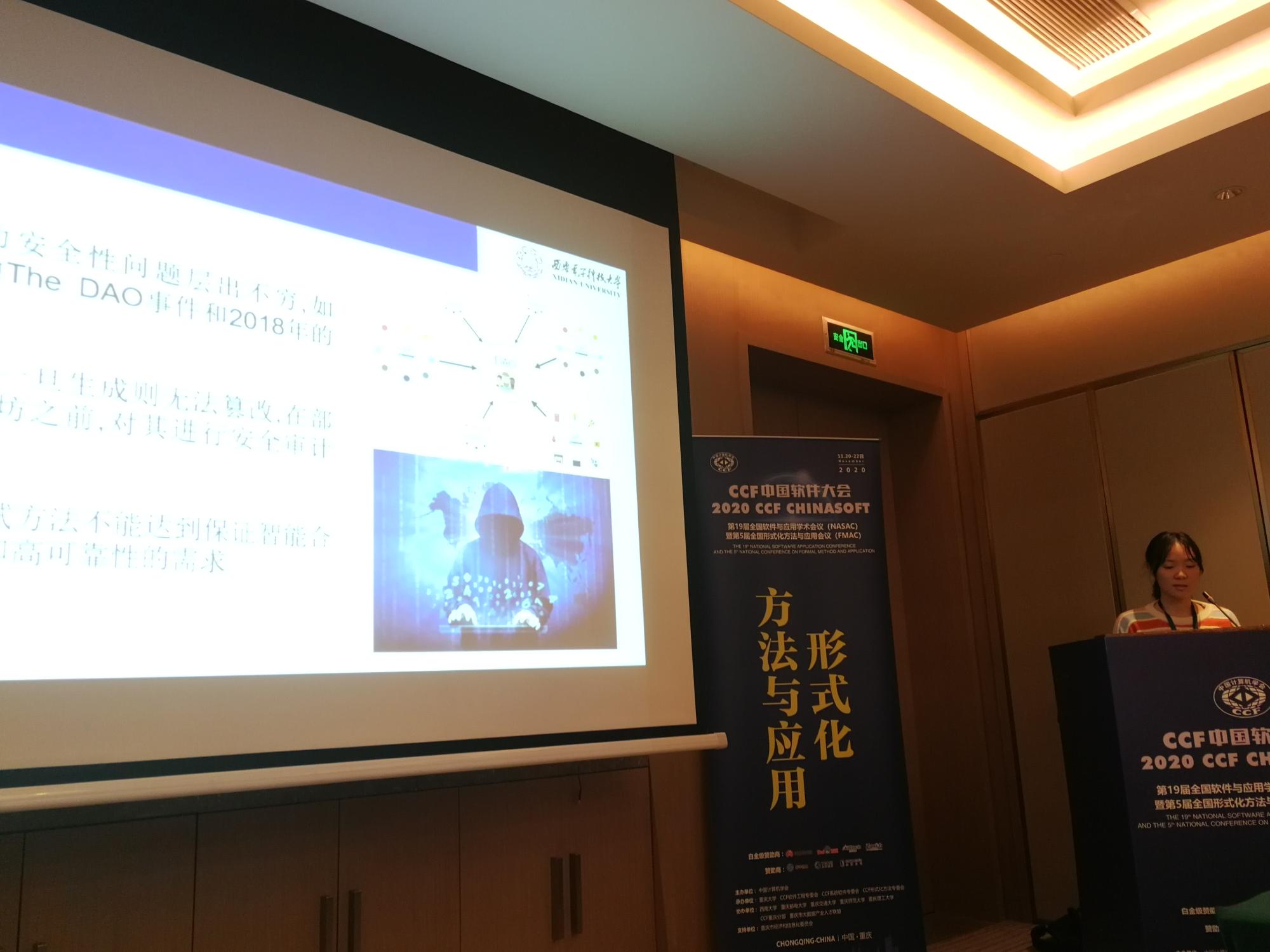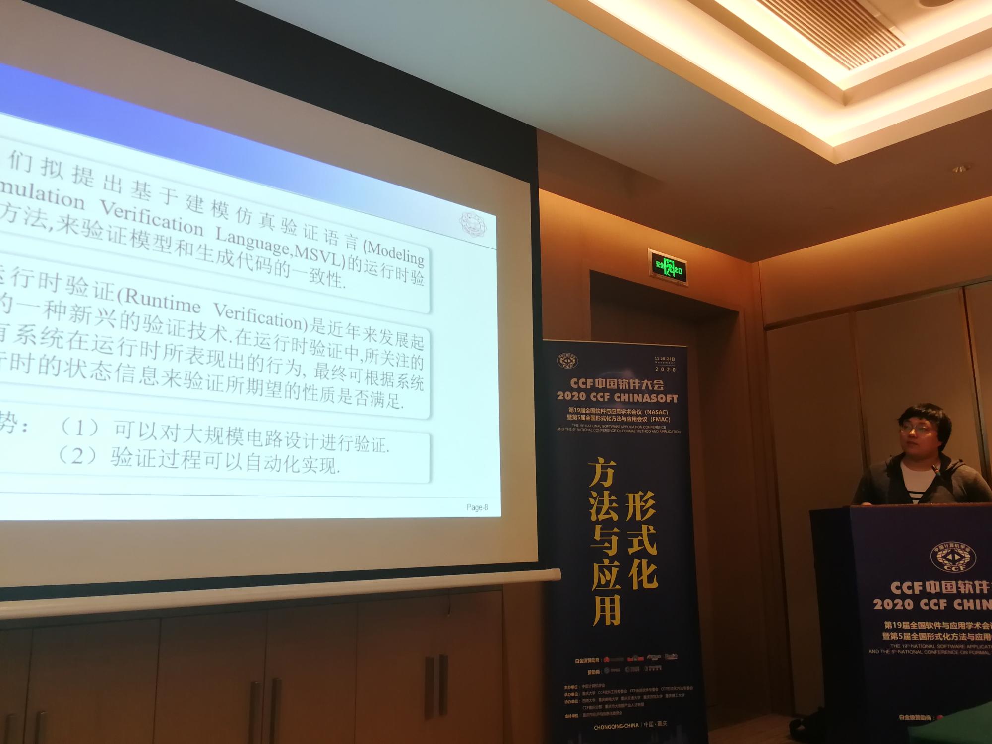 学科参会教师与员工代表在大会上还汇报了多篇被录用的大会论文,被录用的论文同时会被推荐到《软件学报》等知名期刊发表。其中,包括王小兵副教授的论文《基于MSVL的智能合约形式化验证》,张南副教授的论文《芯片开发的功能验证形式化方法与应用》,张捷博士的论文《基于污染变量关系图的Android应用污点分析工具》以及王璐博士的论文《SAFER:基于事件关系保障识别质量的自适应分析方法》等。