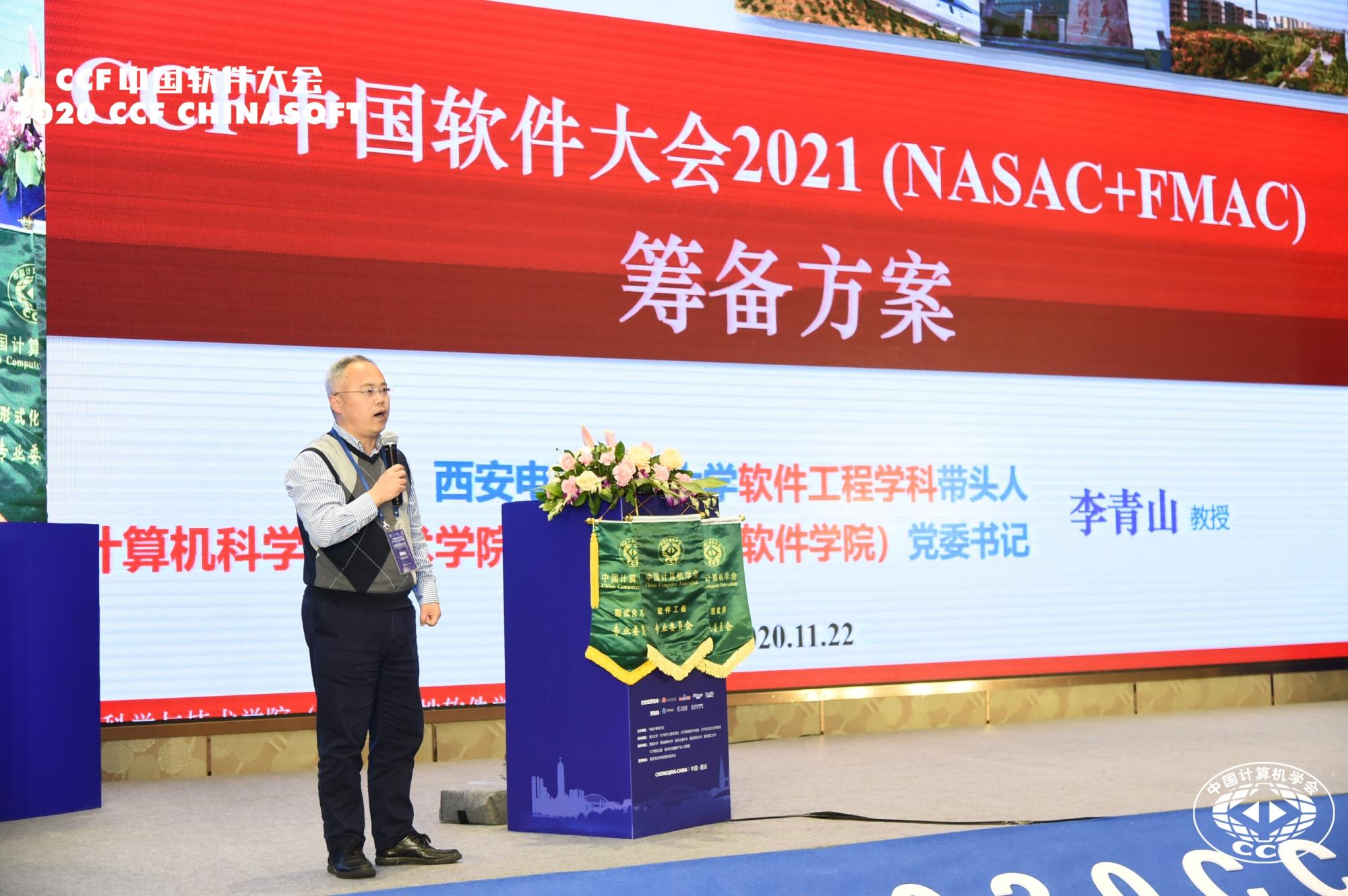 作为大会闭幕式的重要环节,11月22日下午,李青山代表公司、公司与学科,从承办单位概况、会议筹备方案、承办城市环境三个方面向各专委会常委以及参会代表阐述了CCF中国软件大会2021的筹备方案。在承办单位概况部分,李青山介绍了西电的发展历史与学科特色,总结了西电软件工程学科的发展历程与学科团队,回顾了举办过的软件工程领域的相关会议,阐明了西电软件工程学科与国内软件工程学科的紧密关联。接下来,李青山在介绍以往学科团队办会经验的基础上,给出了会场方案的规划,并从接待水平、设施设备、住宿条件、地理交通、周边环境等多个维度对可能的会场方案进行了综合分析。之后,李青山向与会代表简要介绍了承办城市西安在文化、科教、交通等方面的良好环境。