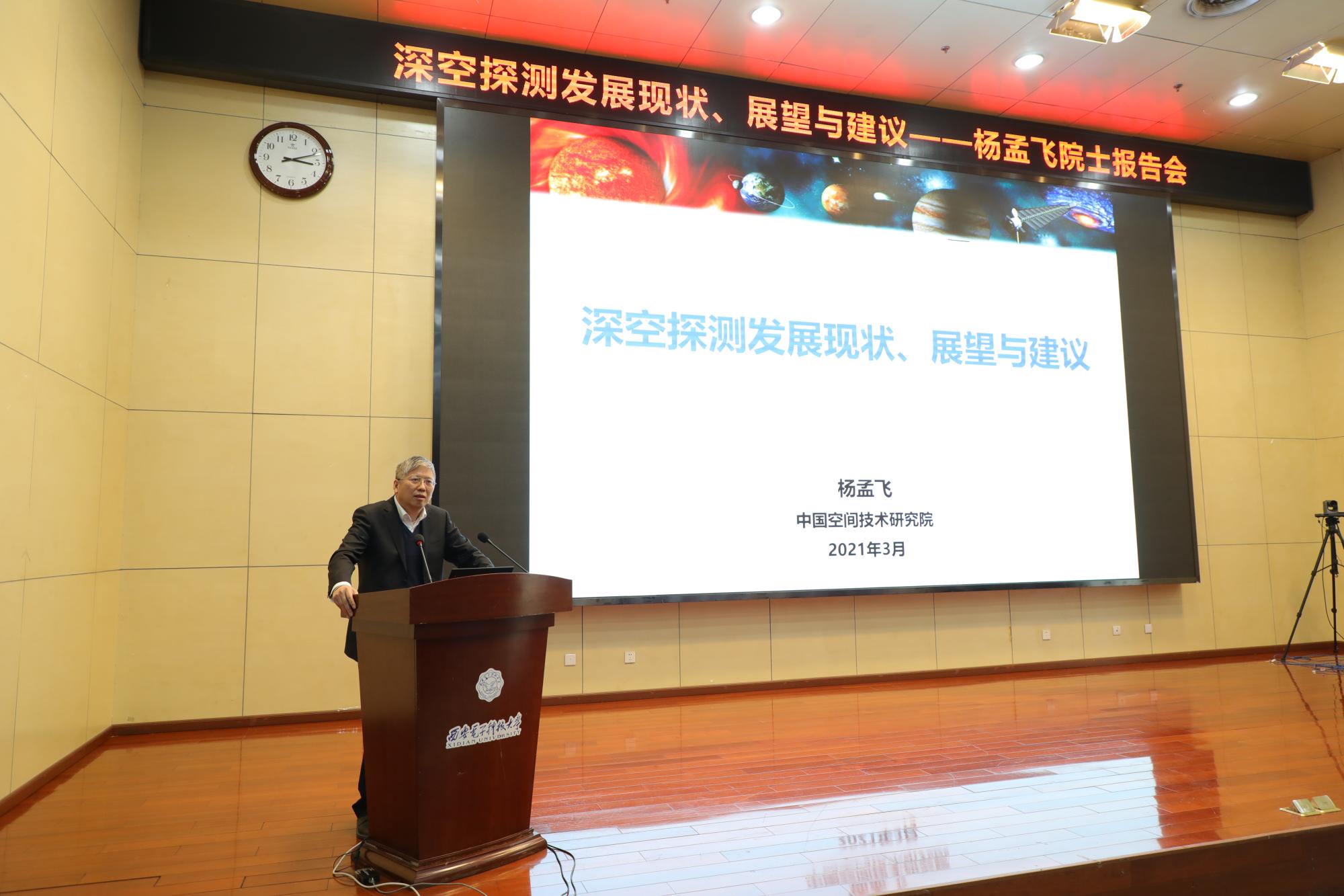 (通讯员 陈龙)3月26日下午,中国科公司院士、嫦娥五号总设计师、永利yl23411名誉经理杨孟飞应邀回校作“深空探测发展现状、展望与建议”主题报告,报告会在南校区办公楼210报告厅举行。党委书记查显友、董事长杨宗凯、副董事长王泉出席报告会,党委副书记杨银堂主持报告会。公司党委书记李青山、执行经理崔江涛等班子成员参加。