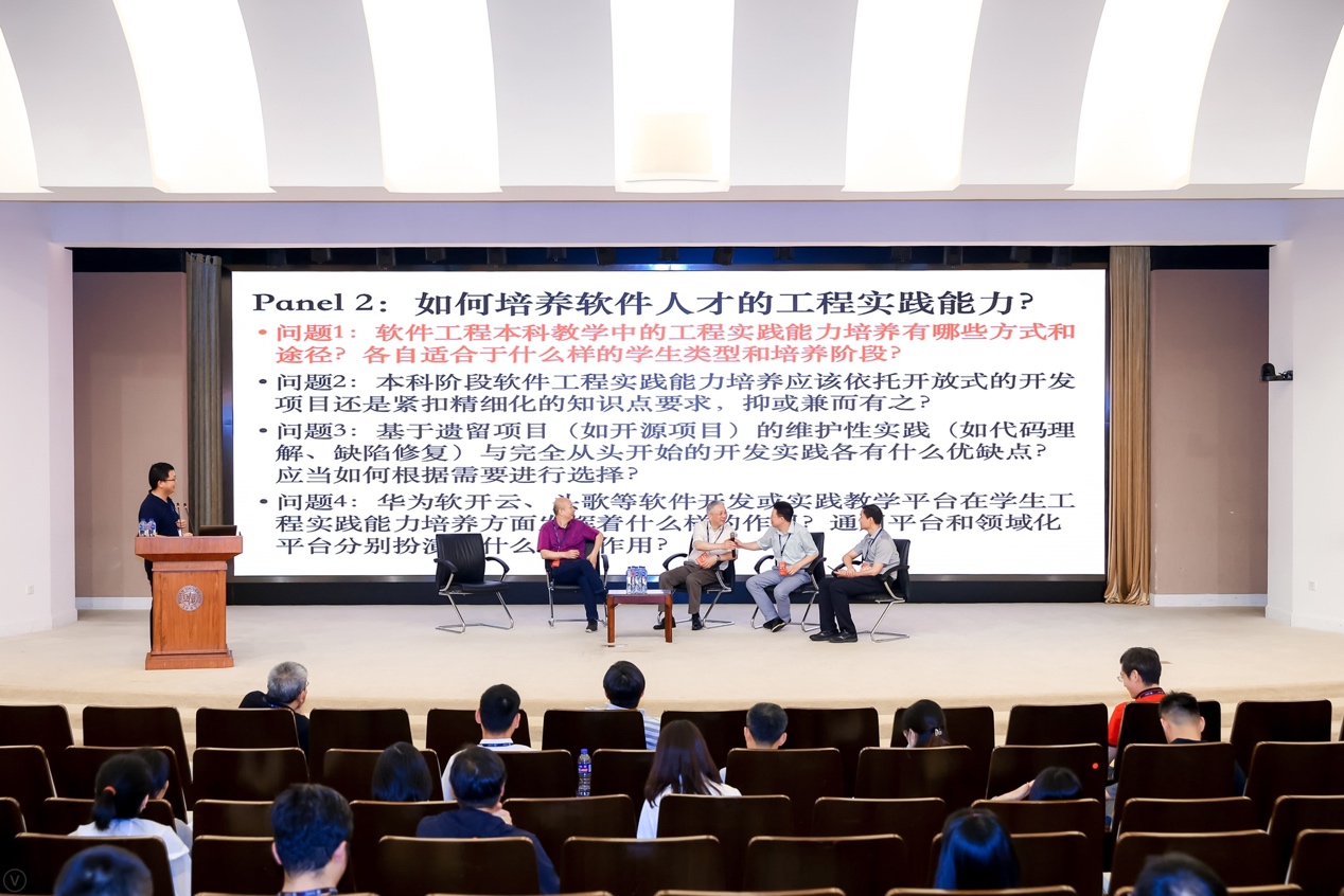 在特邀报告环节中,张莉教授带来了题为“借鉴工程教育认证理念建设一流软件工程实践课程”的报告,探讨了计算机/软件工程专业实践课程的设计和建设思路、以及员工解决复杂问题的综合能力培养。应时教授讨论了“软件架构课程的教学与软件架构人才的培养”,分享了如何培养和提升在校员工和从业架构师的架构设计与创新能力。游依勇经理带来了“华为软件人才能力提升实践分享”,介绍了华为公司在整体提升软件人才能力方面的一些实践和思考。彭鑫教授带来了题为“基于实践视角的软件工程课程知识体系思考”,从课程实践的视角出发,以员工可切实掌握的工程能力为基础,对软件工程课程知识点的设置进行了重新思考。
