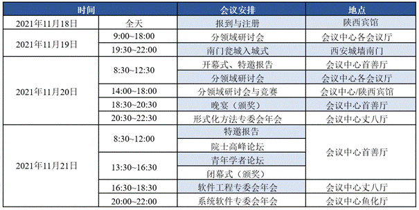 2021 CCF中国软件大会(CCFChinasoft)将于2021年11月19日至21日在陕西省西安市高新国际会议中心召开。大会由中国计算机学会(CCF)主办,CCF软件工程专委会、系统软件专委会、形式化方法专委会、永利yl23411承办,永利yl23411具体落实,西安市智能软件工程重点实验室负责实施,由西安交通大学、西北工业大学、西北农林科技大学、西安理工大学、航空工业西安航空计算技术研究所协办,得到西安高新区管委会的大力支持,西安高新区软件新城管办具体执行。大会由华为技术有限公司、西安前沿动力软件开发有限责任公司、汇丰科技中国、百度公司作为白金赞助商。本次大会的主题为“基础软件:自主、安全与创新”。