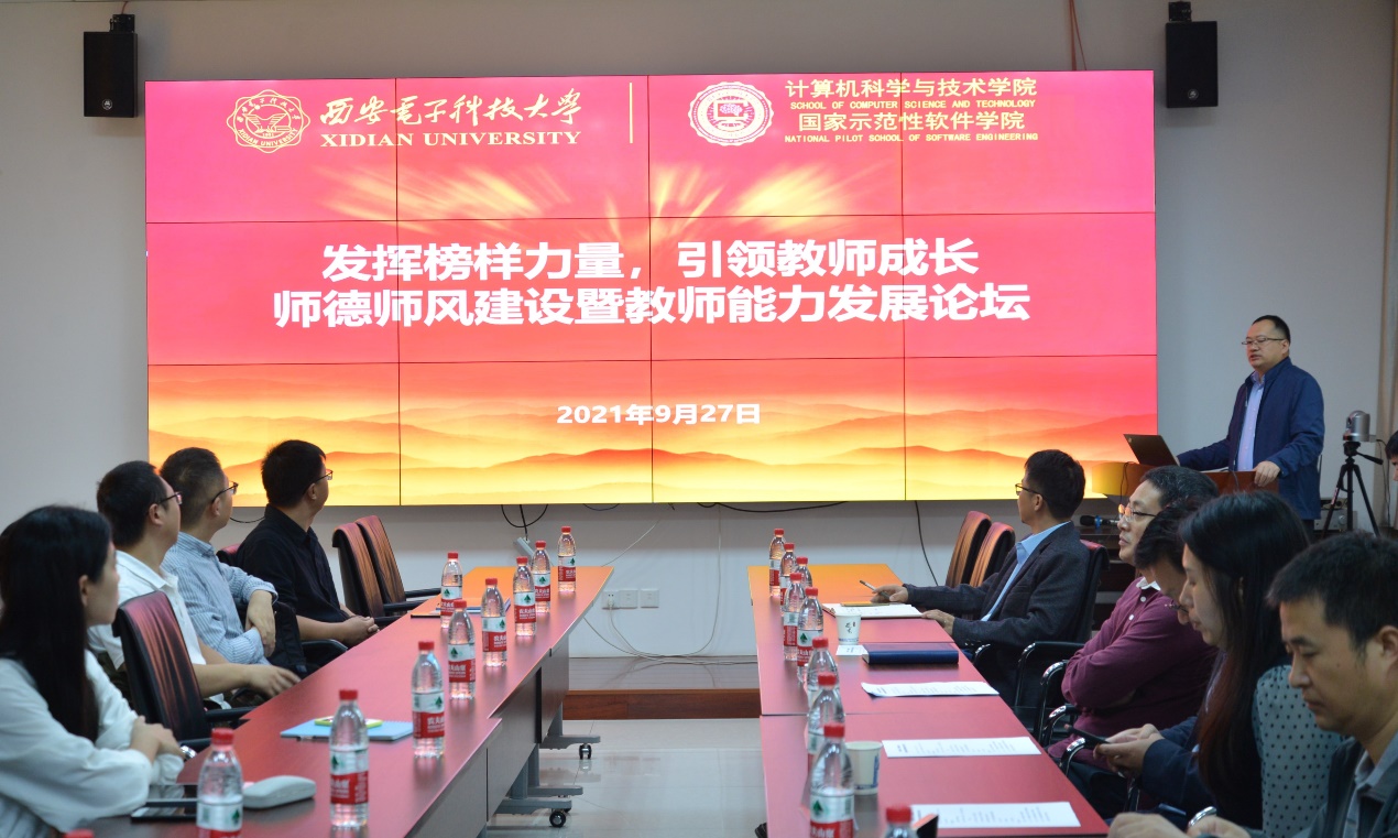 (通讯员 陈龙)9月27日,为进一步发挥榜样力量,促进教师发展、引领教师成长,公司举办了“发挥榜样力量、引领教师成长——师德师风建设暨教师能力发展论坛”,论坛邀请了陕西省师德标兵邓成,教授沈玉龙以及首届全国高校教师教学创新大赛二等奖获得者谢琨老师为公司30余名青年教师分别作了立德树人专题报告、高层次人才成长专题报告以及教学能力提升专题报告,本次活动由副经理赵韩强主持。