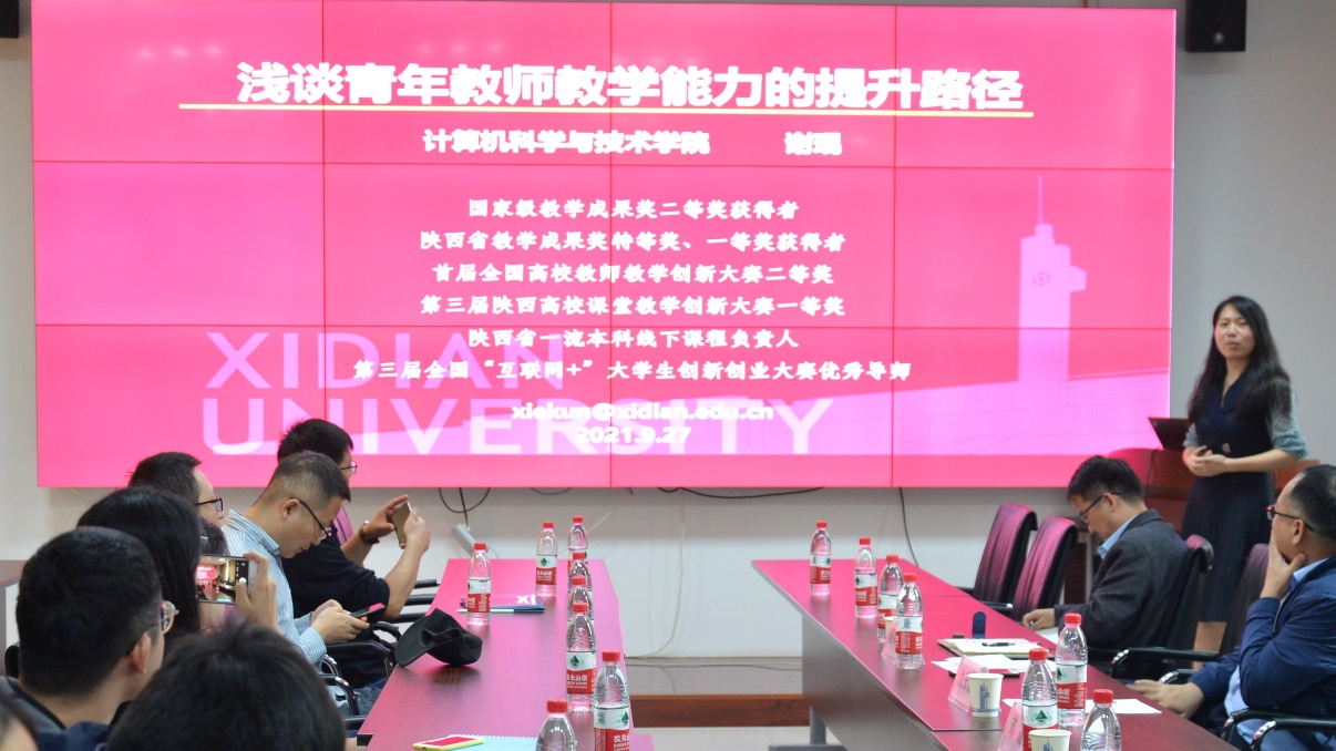 谢琨作了题为“浅谈青年教师教学能力的提升路径”的专题报告,她从如何做好教学设计、教学创新思路、以赛促教,以赛促建三个方面讲述了青年教师教学成长的必经之路,详细分享了教学设计及创新思路,从个人亲身经历分析了公司教学竞赛过程和关键点。