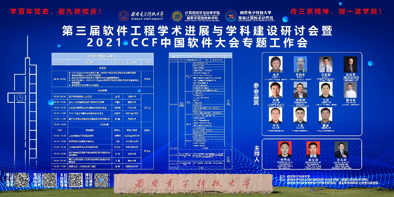 (通讯员 徐悦甡)2021年10月9日至10日,第三届软件工程学术进展与团队建设研讨会暨2021 CCF中国软件大会专题工作会在永利yl23411青岛计算技术研究院成功举办。会议由永利yl23411软件工程学科主办,永利yl23411、永利yl23411青岛计算技术研究院与西安市智能软件工程重点实验室承办。会议通过线上线下结合的方式进行,线下举办地为西电青岛产教融合研究生联合培养基地。