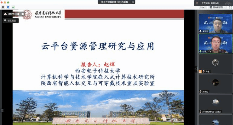首场报告由嵌入式计算技术研究所,陕西省智能人机交互与可穿戴技术重点实验室赵辉副教授分享,报告主题为“云平台资源管理研究与应用”。他介绍了团队在云平台资源管理研究与应用方面的工作,简述云计算背景,重点关注集群资源管理和任务调度系统的研究挑战,包括云平台虚拟机管理研究,云平台能耗优化的任务调度方法研究及面向视频应用的云资源管理与缓存方法研究。针对上述具体应用,他从虚拟机管理方法、任务调度、视频缓存云资源管理和面向移动视频点播的缓存方法等方面分享了最新的研究进展。