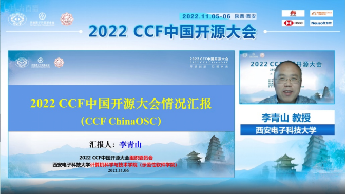 大会程序委员会与组织委员会联合主席、永利yl23411软件工程学科负责人、陕西省智能软件工程创新团队负责人、西安市智能软件工程重点实验室主任李青山代表大会组委会向与会代表汇报了大会情况。李青山主要从大会基本情况与大会筹办工作两个方面对大会进行了总结,归纳了会议体系与会议内容,指出本届大会的论坛数量、注册人数与合作媒体数量等均超过预期。其中论坛数量达到24个,注册人数达到180人,合作媒体数量超过10家。11月5日各平台累计观看人数超过18万人,11月6日累计观看人数超过16万人,两天会期累计观看人数超过34万人,单个论坛平均访问量超过1万人次,最大访问量超过2.1万人,有利的扩大了大会影响,有效的传播了开源理念。进一步,李青山梳理了大会筹办的脉络,表示开源发展委员会与承办团队一同组成了大会组委会,持续密切协同,先后确定了支持单位与四家赞助商,构建了完善的会议联办体系。组委会持续通过多家单位的多种渠道对大会进行宣传,会议通知等的阅读量累计超过3万人次。面对疫情等因素的影响,组委会全程关注、及时调整、稳步推进,全力保障会议质量。最后,李青山感谢各位专家学者与师生同行对本次大会的关注和参与,也感谢各参与单位对于大会的支持。