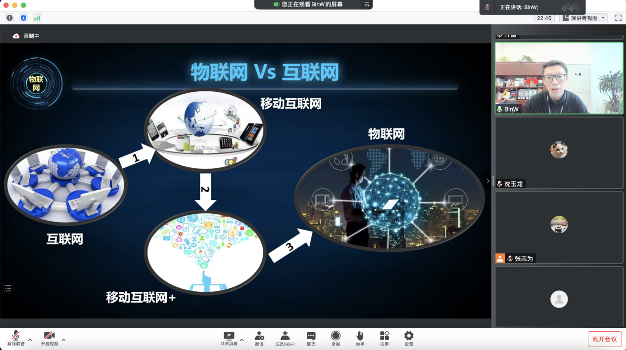 11月3日下午,王滨副总裁的报告主题为“物联网的现状与安全思考”。他首先介绍了物联网和互联网的区别及物联网发展现状,分析了“如何充分用好网络”和“什么样的网络更好用”的新型网络亟待解决的核心问题。针对以上问题,回顾了物联网拟解决的安全问题,介绍了密码技术在物联网中的应用、物联网终端设备的内生安全和AI技术在物联网安全中的应用。最后他讨论了一些开放的问题,对未来的物联网研究进行展望,并与参会师生进行互动交流。