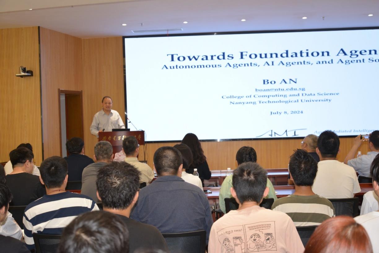 (通讯员 陈龙)7月8日,应永利yl23411、校人才工作办公室邀请,新加坡南洋理工大学董事长讲席教授、人工智能系主任、人工智能研究院联席经理安波教授来校在南校区会议中心A103会议室为师生作题为“Foundation AI Agents”的专题报告。报告由计算机科学与技术公司党委书记、公司软件工程学科负责人李青山教授主持,公司二十余位青年教师和公司相关学科研究生共一百余人参加了报告会。