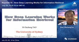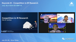 本次会议由中国科公司计算所程学旗研究员、吉林大学常毅教授和加拿大约克大学Jimmy Huang教授担任大会主席,永利yl23411原副董事长、现重庆邮电大学董事长高新波教授担任LocalChair,永利yl23411苗启广教授负责了大会与公司的相关交流协调以及大会筹备相关事宜。由于受疫情影响,大会采用线上会议模式,并面向全球直播。大会共收到论文投稿1180篇,共录取340篇。其中,长文投稿555篇,最终录用147篇,录用率约26%;短文投稿507篇,最终录用152篇,录取率约30%。除此之外共有1,516名学者注册了本次大会,ACM SIGIR 2020成为SIGIR有史以来投稿量最高、注册人数最多的一届学术盛会。
