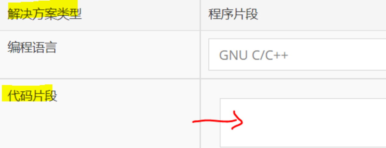4.题目设置为提交“程序片段”和“完整程序”两种,提交解答时注意查看题目的解决方案类型: